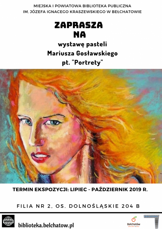 Autorem obrazów jest Mariusz Gosławski, szczególną popularność przyniosło mu tworzenie obrazów nietypowym materiałem - kawą, ale ten lokalny twórca specjalizuje się także w malarstwie akwarelami czy farbami. Prezentowana w bibliotece wystawa to zbiór prac portretowych wykonanych pastelami.