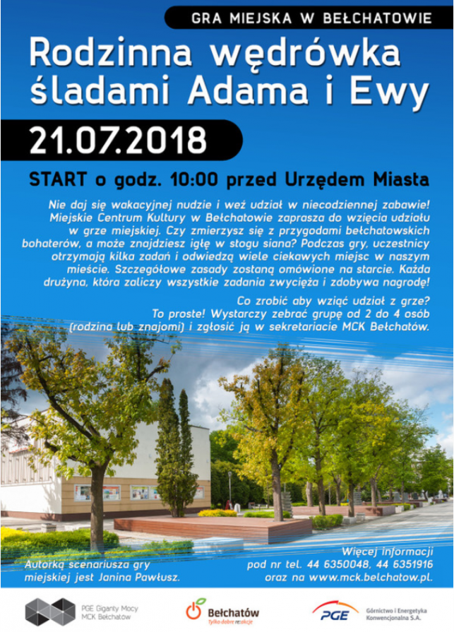 Uczestnicy gry miejskiej będą musieli zmierzyć się z siedmioma zadaniami, które będą rozmieszczone w kilku miejscach na terenie miasta Bełchatowa. Aby wziąć udzial w grze należy zebrać grupę od 2 do 4 osób i zapisać się w sekretarciacie MCK.