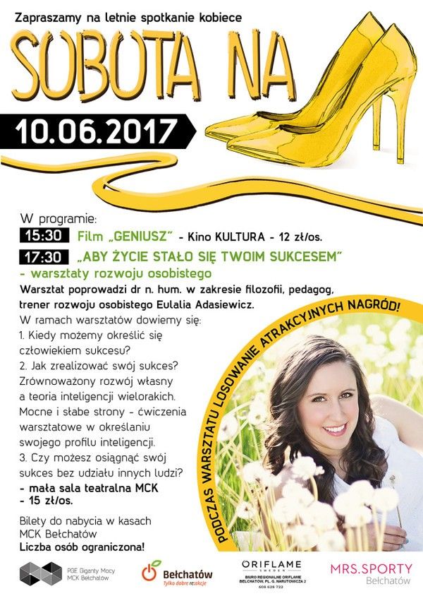 Po filmowej propozycji Panie wezmą udział w warsztatach rozwoju osobistego - „Aby życie stało się Twoim sukcesem”, które poprowadzi dr n. humanistycznych, pedagog i trener rozwoju osobistego Eulalia Adasiewicz. Prelegentka spróbuje odpowiedzieć na pytania: „kiedy możemy określić się człowiekiem sukcesu?” oraz „jak zrealizować swój sukces?”. Panie również będą mogły sprawdzić swoje słabe i mocne strony oraz określić profil inteligencji.