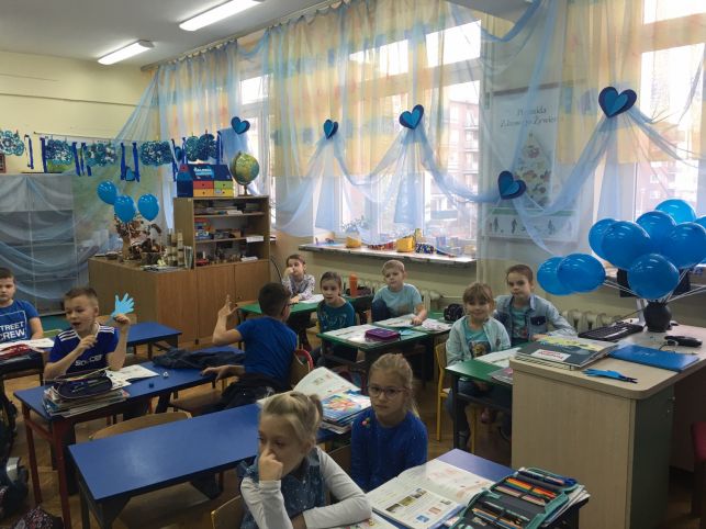 - W obchody Międzynarodowego Dnia Praw Dziecka włączyły się także placówki edukacyjne w Polsce. Setki szkół i przedszkoli zdecydowały się uczcić 30. rocznicę uchwalenia Konwencji o prawach dziecka. Do akcji przystąpiła także nasza Szkoła, która zorganizowała w ramach tego dnia wiele różnorodnych aktywności dla uczniów. Wszyscy uczniowie szkoły przyszli tego dnia ubrani na niebiesko, bo to właśnie kolor niebieski jest kolorem UNICEF i symbolem jedności wszystkich dzieci na świecie. Najmłodsi uczniowie szkoły przystroili swoje klasy na niebiesko, biorąc udział w konkursie na Niebieską Klasę UNICEF. W konkursie zwyciężyła klasa 0a. Gratulujemy uczniom i wychowawcy! Starsi uczniowie klas 4-8, brali udział w warsztatach plastycznych Niebieski Świat Dzieci pod kierunkiem pani Marzeny Pikulskiej i pani Beaty Kowalczyk. Powstało 19 dużych plakatów prezentujących dzieci - mieszkańców różnych krajów – informują pracownicy SP 13 w Bełchatowie.