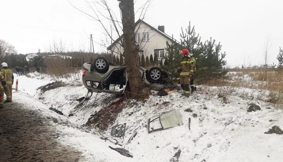 Przypomnijmy. Do wypadku doszło w niedzielę, 14 stycznia w Rozprzy. Kierujący samochodem VW Passat uderzył w tył samochodu Renault Megane, który na skutek tego uderzenia zjechał na lewą stronę do rowu, a następnie dachował i uderzył w drzewo