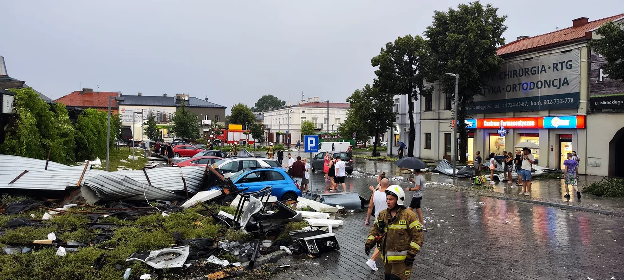 W sieci pojawia się coraz więcej zdjęć, na których widać, z jak potężnym załamaniem pogody musieli zmierzyć się mieszkańcy. W jednym z centrów handlowych zerwało się pokrycie dachowe, a Plac Tadeusza Kościuszki pokryty jest częściami dachów, zerwanych reklam i elewacji okolicznych budynków.