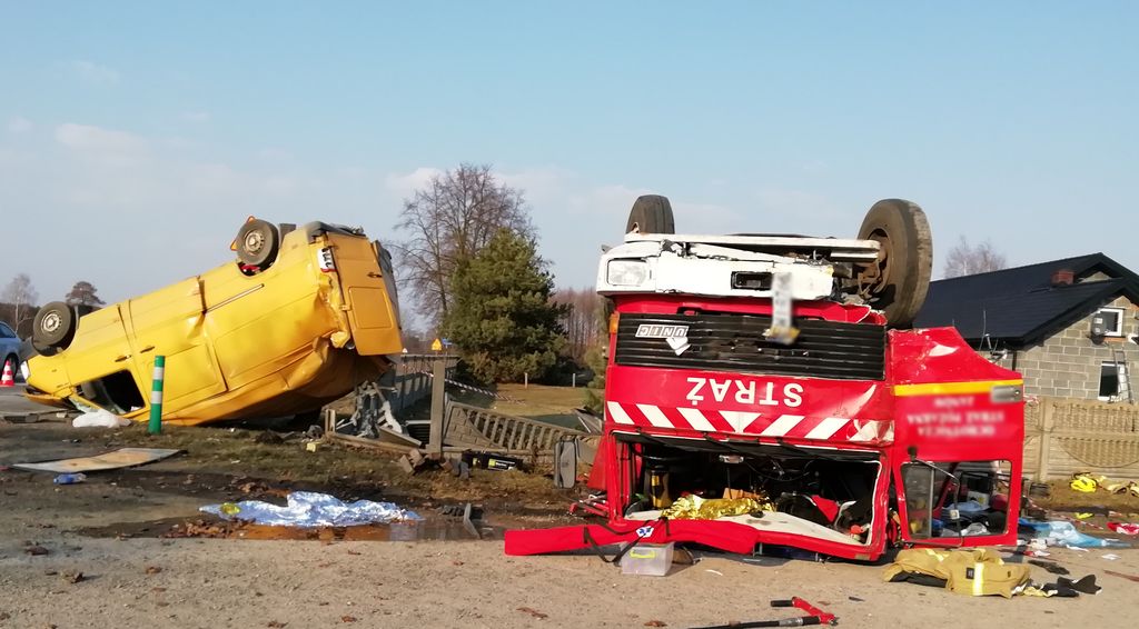 Impet zderzenia był tak silny, że oba pojazdy wywróciły się i stanęły do góry kołami, demolując przy tym betonowe ogrodzenie pobliskiej posesji. W zdarzeniu ucierpiał kierowca volkswagena oraz dwójka strażaków – jeden z ratowników został przetransportowany do szpitala śmigłowcem LPR. Obaj kierowcy byli trzeźwi. Dokładne przyczyny tego wypadku będą teraz wyjaśniać policjanci z Osjakowa.