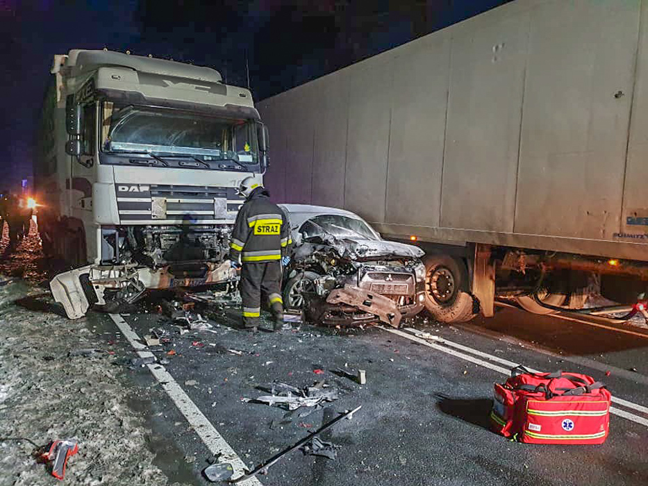 Do groźnego wypadku doszło we wtorek, 2 lutego na DK74 w miejscowości Jaksonek, gdzie zderzyły się aż trzy samochody ciężarowe oraz dwie osobówki. Ze wstępnych ustaleń policjantów wynika, że przyczyną był powstały wcześniej zator drogowy, którego najprawdopodobniej nie zauważył jeden z kierowców ciężarówki.