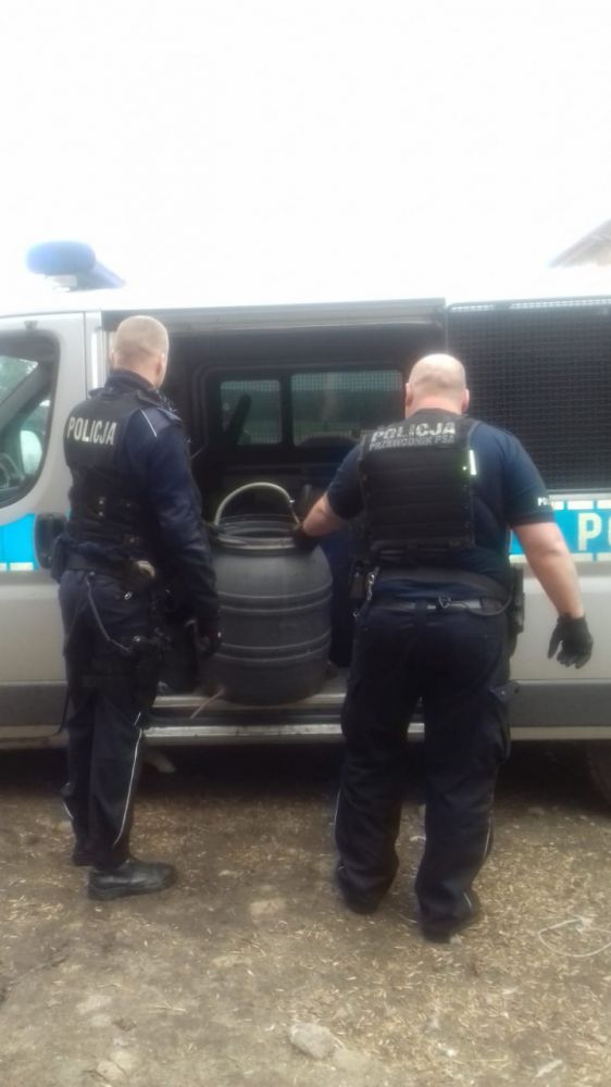- Policjanci z Wydziału Patrolowo – Interwencyjnego piotrkowskiej komendy pojechali do domu jednorodzinnego w gminie Rozprza, by zweryfikować otrzymane informacje wskazujące na nielegalną, domową produkcję alkoholu. Po wejściu do budynku gospodarczego zobaczyli niecodzienny „wystrój". Beczki z zawartością zacieru przygotowanego do wytworzenia tak zwanego bimbru oraz część aparatury do nielegalnego wyrobu alkoholu – informują policjanci z KMP w Piotrkowie Trybunalskim.