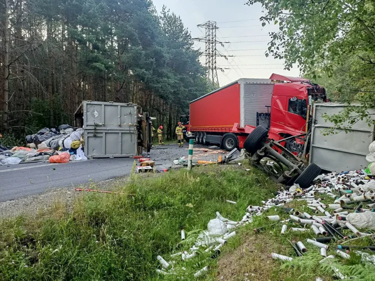 Do zderzenia dwóch pojazdów doszło we wtorek, 5 lipca, około godziny 5 rano w miejscowości Gałkowice Stare (gmina Kamieńsk) na drodze pomiędzy Kaliskiem i Kamieńskiem. Ze wstępnych ustaleń policjantów wynika, że jeden z kierowców zwolnił, chcąc skręcić w lewo. Wtedy drugi kierujący nie zdążył wyhamować i wjechał w tył ciężarówki. W wyniku tego zdarzenia samochód przewożący odpady przewrócił się, a śmieci wysypały się na jezdnię.