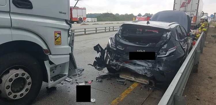 Do śmiertelnego wypadku doszło tuż po godz. 4 w miejscowości Parzniewice na 365 km autostrady A1 w stronię Gdańska. Z ustaleń policji wynika, że 56-leni kierujący ciężarowką z naczepą, z nieustalonych przyczyn najechał na samochód marki Kia. Śmierć poniosła 49-letnia pasażerka osobówki. Natomiast nastoletnie dziecko przewiezione zostało do szpitala.