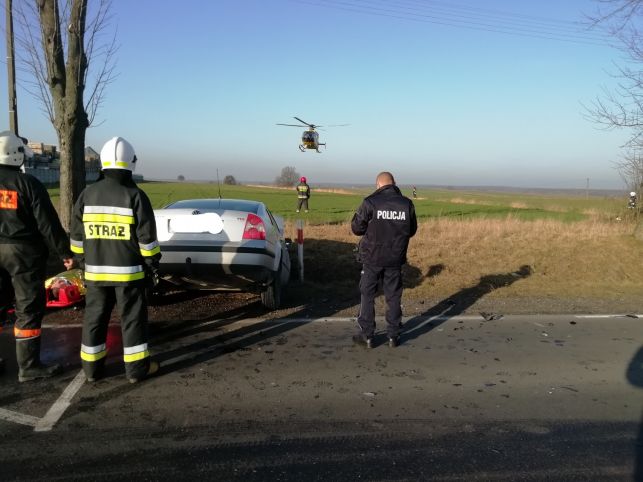 Do zdarzenia doszło w sobotę, 8 lutego około godziny 14:00 w miejscowości Bugaj Dmeniński. Jadący w stronę Radomska, 34 -letni kierowca volkswagena podczas zjazdu na stację paliw, zmieniając pas ruchu nie ustąpił pierwszeństwa. W wyniku tego doszło do zderzenia z nadjeżdżający z naprzeciwka audi, kierowanym przez 41 -latka. W audi podróżowała również kobieta wraz z 6 miesięcznym dzieckiem. Na miejscu interweniował też śmigłowiec LPR. Wszystkim uczestnikom udzielono pomocy medycznej. Obaj kierowcy byli trzeźwi.