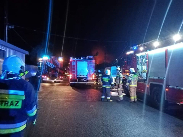 Gdy piotrkowscy strażacy dojechali na miejsce pożaru, ogień w jednym z budynków zdążył się już rozwinąć, dlatego niezbędne było zadysponowanie dodatkowych sił, w tym wozu z drabiną mechaniczną z Bełchatowa.