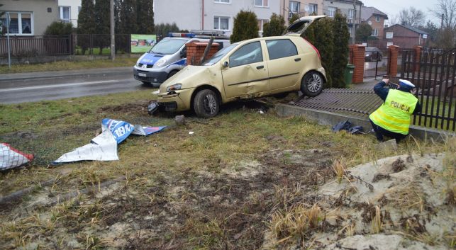 - Najpierw zjechał na prawe pobocze i uderzył w zaparkowanego tam golfa, który w wyniku uderzenia został przesunięty i uderzył w ogrodzenie posesji. Następnie punto zjechało z jezdni i sunęło wzdłuż kolejnych ogrodzeń, uszkadzając je. Dodatkowo uszkodzona została skrzynka energetyczna - informują policjanci z KPP w Radomsku