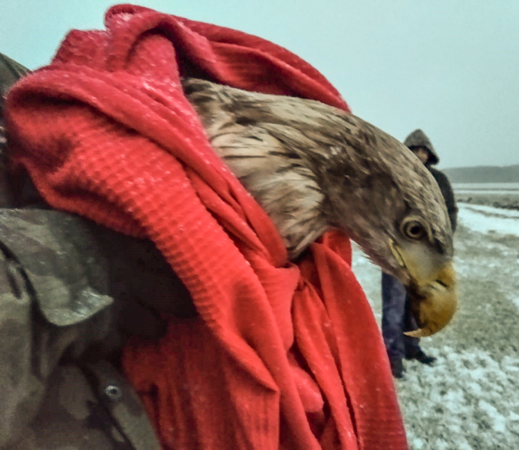 Wspólny wysiłek okazał się skuteczny, rannego drapieżnika udało się schwytać i bezpiecznie umieścić w klatce. Ptak trafił do lekarza weterynarii, gdzie otrzymał odpowiednie leki, a także kroplówkę. Zwierzę przebywa obecnie w Leśnej Osadzie w Kole, gdzie wraca do pełnej sprawności.
