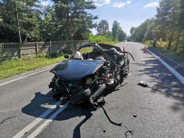 Impet uderzenia był tak duży, że 22 -latek został wyrzucony z samochodu. Młody kierowca poniósł śmierć na miejscu. Kobieta, która prowadziła golfa, ze złamaną ręką trafiła do szpitala.