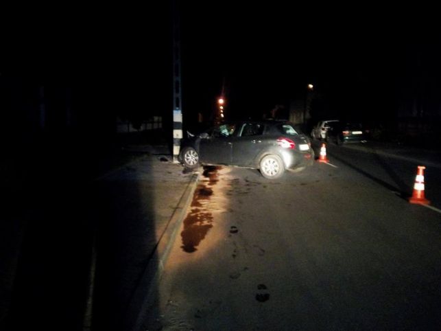RegionW Zelowie, w nocy o 3:35 samochód osobowy uderzył w słup.