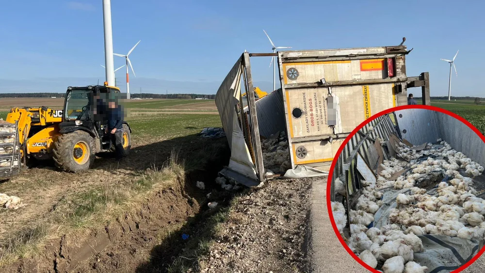 Około godz. 6:30 w miejscowości Polichno (powiat piotrkowski) kierowca samochodu ciężarowego z niewiadomych na chwilę obecną przyczyn stracił panowanie nad pojazdem i wjechał do przydrożnego rowu. W pojeździe przewożono 5,5 tysiąca kurczaków.