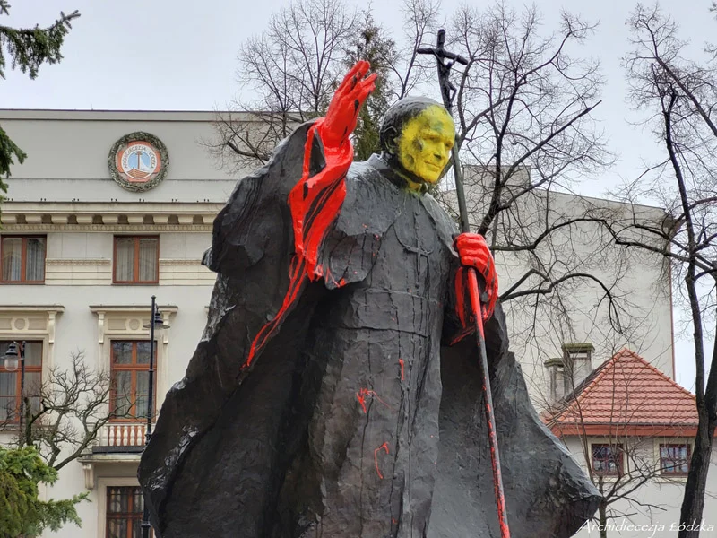 - O godz. 6.15 dyżurny policji otrzymał zgłoszenie o zniszczeniu pomnika Jana Pawła II stojącego przed katedrą przy ul. Piotrkowskiej. Na miejscu funkcjonariusze przeprowadzili oględziny pomnika, zabezpieczono materiał fotograficzny z monitoringu. Prowadzone są czynności zmierzające do ustalenia sprawcy - informował podkom. Adam Dembiński z Komendy Wojewódzkiej Policji w Łodzi.