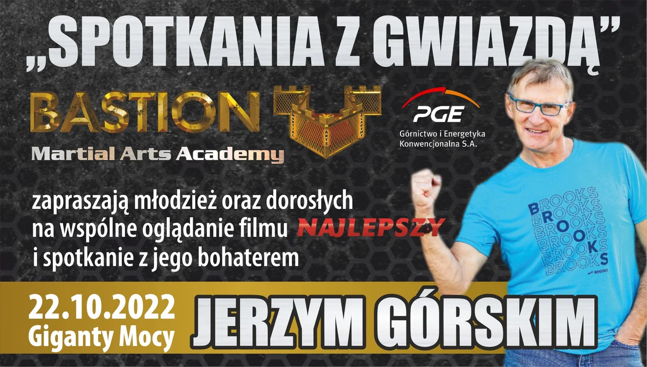 22 października w PGE Giganty Mocy Bastion Bełchatów zaprasza na spotkanie z bohaterem filmu Najlepszy - Jerzym Górskim. Wydarzenie rozpocznie się o godzinie 16:00 i jest przeznaczone dla młodzieży i dorosłych.