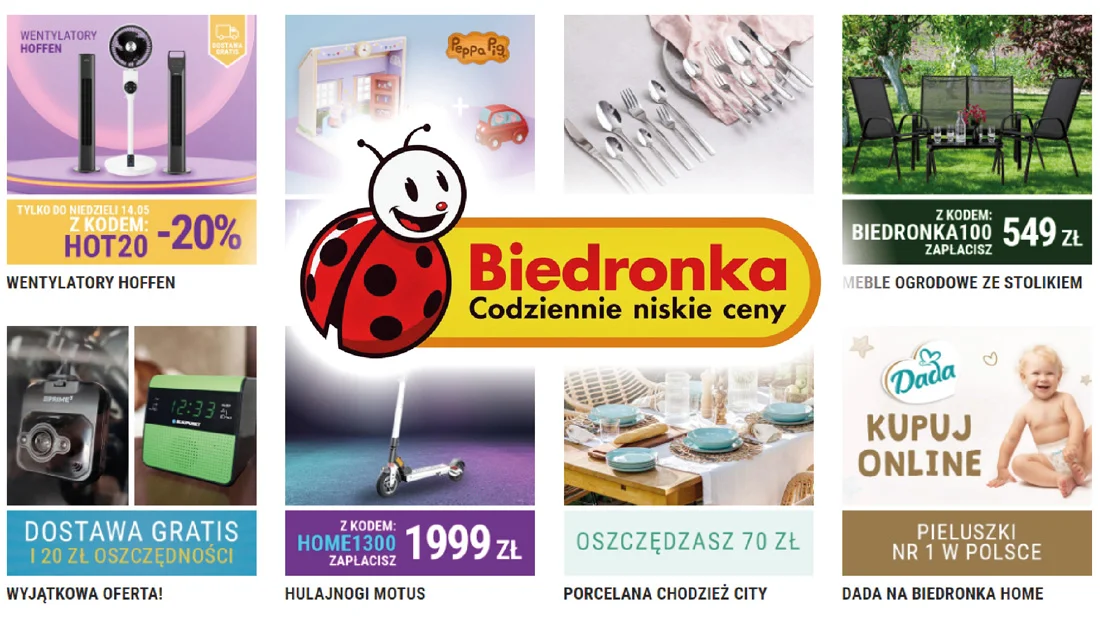 Biedronka to jedna z największych sieci dyskontów w Polsce, która od wielu lat cieszy się dużą popularnością. Nie dziwi fakt, że Biedronka poszerza swoją ofertę o sklep internetowy, w którym proponuje swoje towary i kusi licznymi promcjami.
