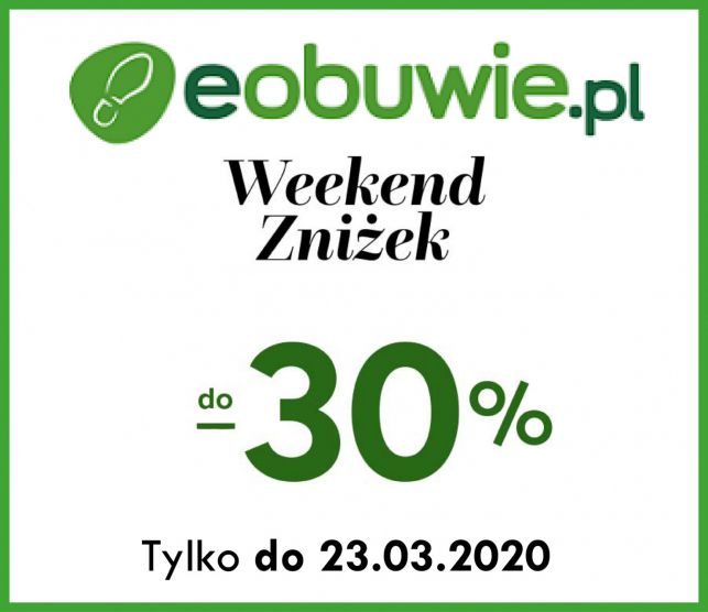 RozmaitościTylko do poniedziałku 23.03 jeden z największych sklepów internetowych eobuwie.pl oferuje mega wyprzedaż. Kup obuwie z rabatem do - 30%. Wystarczy że użyjesz kodu rabatowego WEEK. Do sklepu wejdziecie klikając TUTAJ.