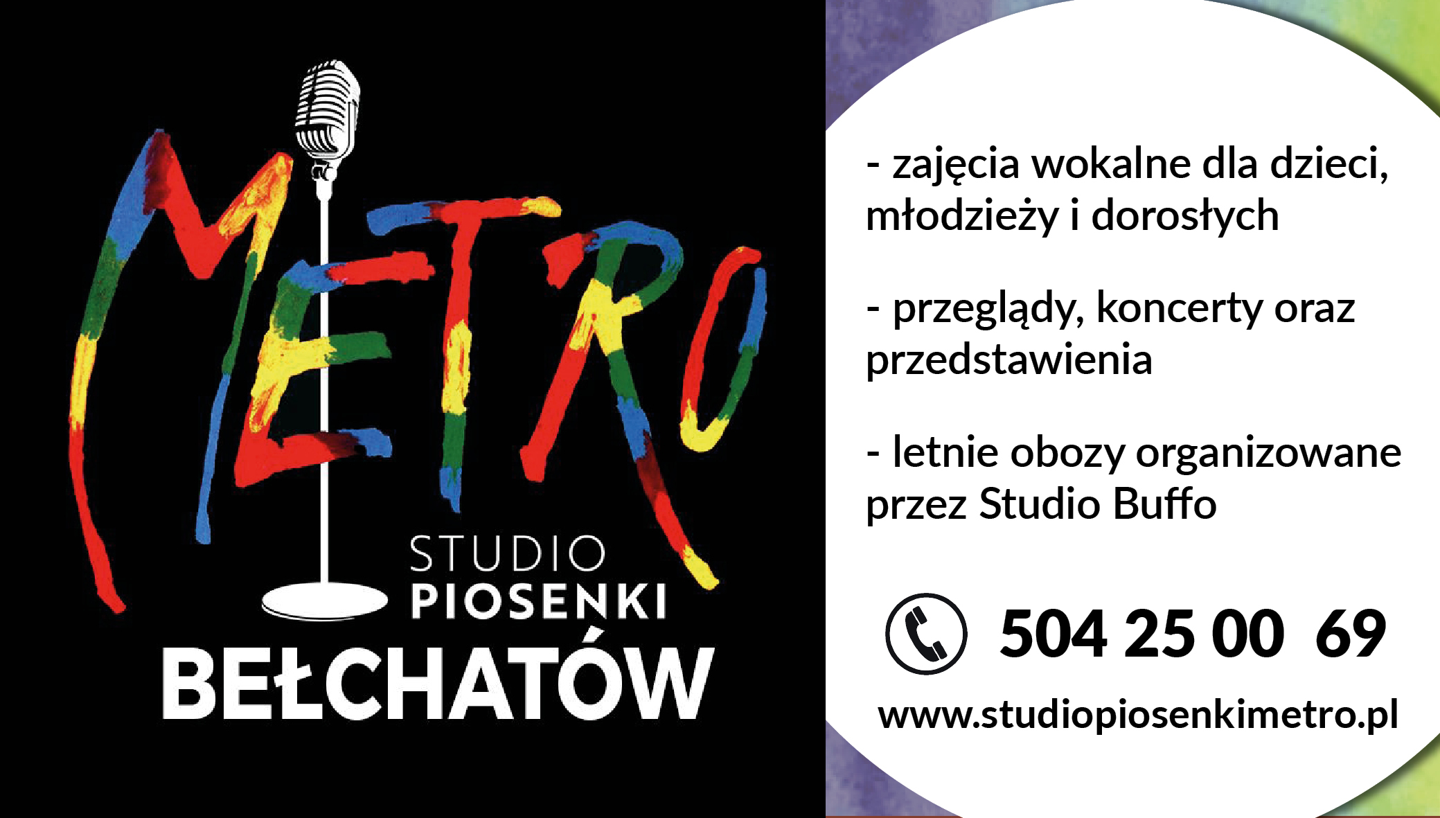 Uczestnictwo w zajęciach Studio Piosenki Metro to niezwykła szansa na rozwój talentu śpiewu, aktorstwa i tańca. Studio Piosenki Metro to idealne miejsce, aby rozpocząć lub znaleźć drogę do sukcesu, jakim może być np. angaż do spektaklu lub udział w innych ciekawych projektach artystycznych.