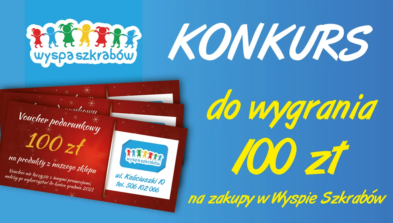Na profilu facebook'owym Dzień Dobry Bełchatów organizowany jest konkurs, w którym do wygrania są trzy vouchery o wartości 100 zł każdy na zakupy w Wyspie Szkrabów! Aby wziąć udział w konkursie, kliknij TUTAJ.