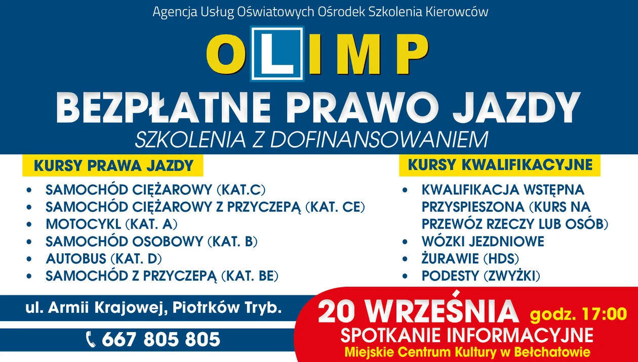 2. Mieszkańców powiatu bełchatowskiego i nie tylko, którzy są osobami bezrobotnymi i mają ukończone 30 lat, którzy będą mogli zapisać się na DARMOWE prawo jazdy KAT.C (samochód ciężarowy) oraz na kurs KWALIFIKACJI WSTĘPNEJ PRZYSPIESZONEJ (kurs na przewóz rzeczy/osób).