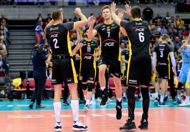 PGE Skra: Łomacz, Wlazły, Ebadipur, Szalpuk, Kochanowski, Kłos i Piechocki (L) oraz Katić, Fiel, Orczyk, Teppan