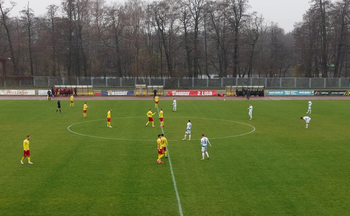 Sztab szkoleniowy "Brunatnych" zdecydował się na trzy zmiany w wyjściowym składzie na mecz ze Zniczem Pruszków w porównaniu do zremisowanego u siebie spotkania z Wisłą Puławy (1:1). W miejsce Łukasza Wrońskiego, Jakuba Miarki i Szymona Sołtysińskiego od pierwszej minuty zagrali Waldemar Gancarczyk, Damian Warnecki i Mikołaj Gabor.