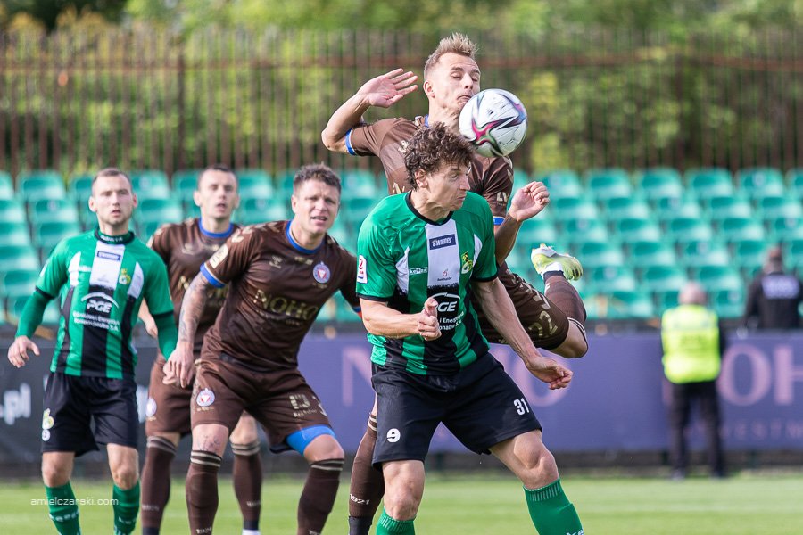 W drugiej połowie obraz gry nie uległ zmianie. Wciąż było mnóstwo walki w środku pola oraz ledwie kilka okazji bramkowych. "Brunatni" najbliżej wyrównania byli bodajże w 88. minucie. Po przedłużeniu dośrodkowania na długi słupek do piłki dopadł jeden z zawodników GKS-u i mocno wstrzelił ją w pole bramkowe, gdzie zagranej z taką mocą futbolówki nie zdołał należycie skontrować inny z piłkarzy górniczego zespołu. W samej końcówce biało-zielono-czarni nadziali się jeszcze na groźną kontrę, ale ta skończyła się uderzeniem w słupek.