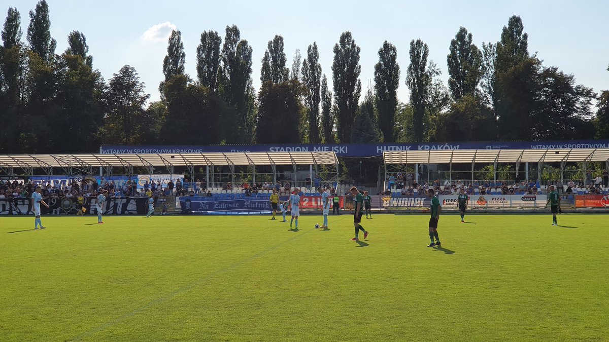 Żółte kartki: Stawarczyk, Hoyo-Kowalski, Wojcinowicz, Chmiel, Tetych.Hutnik Kraków: 1. Bartłomiej Frasik - 3. Tomasz Wojcinowicz, 23. Piotr Stawarczyk, 4. Łukasz Kędziora (59, 45. Daniel Hoyo-Kowalski) - 15. Bartosz Tetych, 20. Mateusz Gajda (60, 11. Dominik Zawadzki), 5. Miłosz Drąg (72, 25. Patryk Kieliś), 7. Krzysztof Świątek (72, 16. Sławomir Chmiel), 10. Abdallah Hafez, 13. Piotr Zmorzyński - 28. Michał Kitliński (60, 8. Kamil Sobala).
