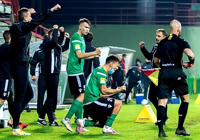 Choc od poprzedniej potyczki o ligowe punkty minęły blisko trzy tygodni sztab szkoleniowy biało-zielono-czarnych zdecydował się na zaledwie dwie zmiany w wyjściowej jedenastce w porównaniu do bezbramkowo zremisowanego meczu w Nowym Sączu. W środku pola zobaczyliśmy Waldemara Gancarczyka, który zastąpił nieobecnego z powodu nadmiaru kartek Michała Pawlika, a w linii ataku zameldował się Patryk Winsztal, ktgóremu miejsca musiał ustawić Przemysław Zdybowicz.