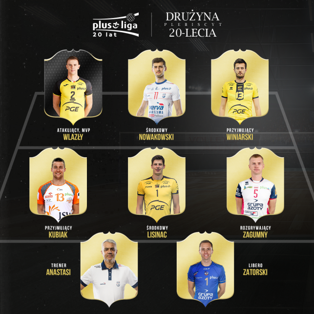 Czternastkę uzupełnili rozgrywający Benjamin Toniutti, atakujący Gyorgy Grozer, libero Krzysztof Ignaczak, środkowi Karol Kłos i Arkadiusz Gołaś oraz przyjmujący Bartosz Kurek i Stephane Antiga. Tym samym dream team 20-lecia Polskiej Ligi Siatkówki stworzyło aż ośmiu zawodników związanych z PGE Skrą Bełchatów (wyboldowane nazwiska), a kolejni jak śp. Miguel Angel Falasca, Piotr Gacek, Daniel Pliński czy Marcin Możdżonek zajęli pierwsze miejsca na „liście rezerwowej”. Szkoda, że już tylko jednego z nich będziemy mogli oglądać w najbliższym sezonie w barwach bełchatowskiego klubu.