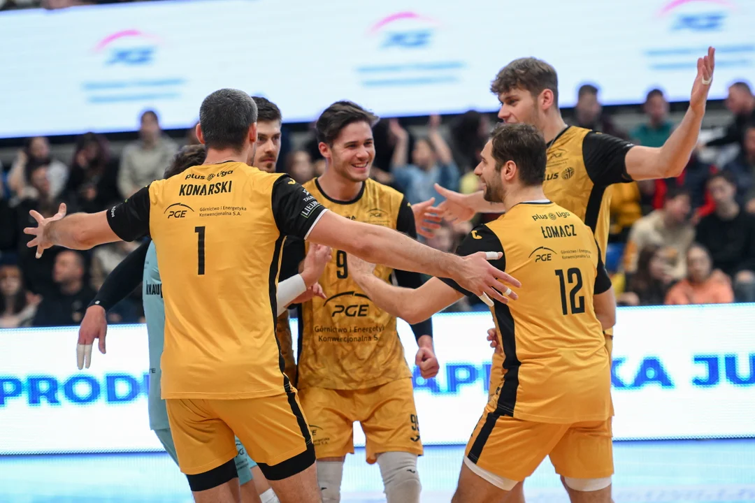 Pierwszego seta z wysokiego „C” rozpoczęli co prawda gospodarze (8:3), ale niezrażeni takim obrotem spraw siatkarze PGE GiEK Skry szybko wrócili do gry. Praktycznie całą stratę udało się odrobić w ustawieniu z Mateuszem Porębą na zagrywce (8:7). Z akcji na akcję gra Łomacza i spółki wyglądała lepiej, a przyciśnięty trudną zagrywką i stłamszony solidnym blokiem GKS gasł w oczach. Ostatecznie premierowa odsłona została wygrana przez zespół z Bełchatowa różnicą czterech oczek.