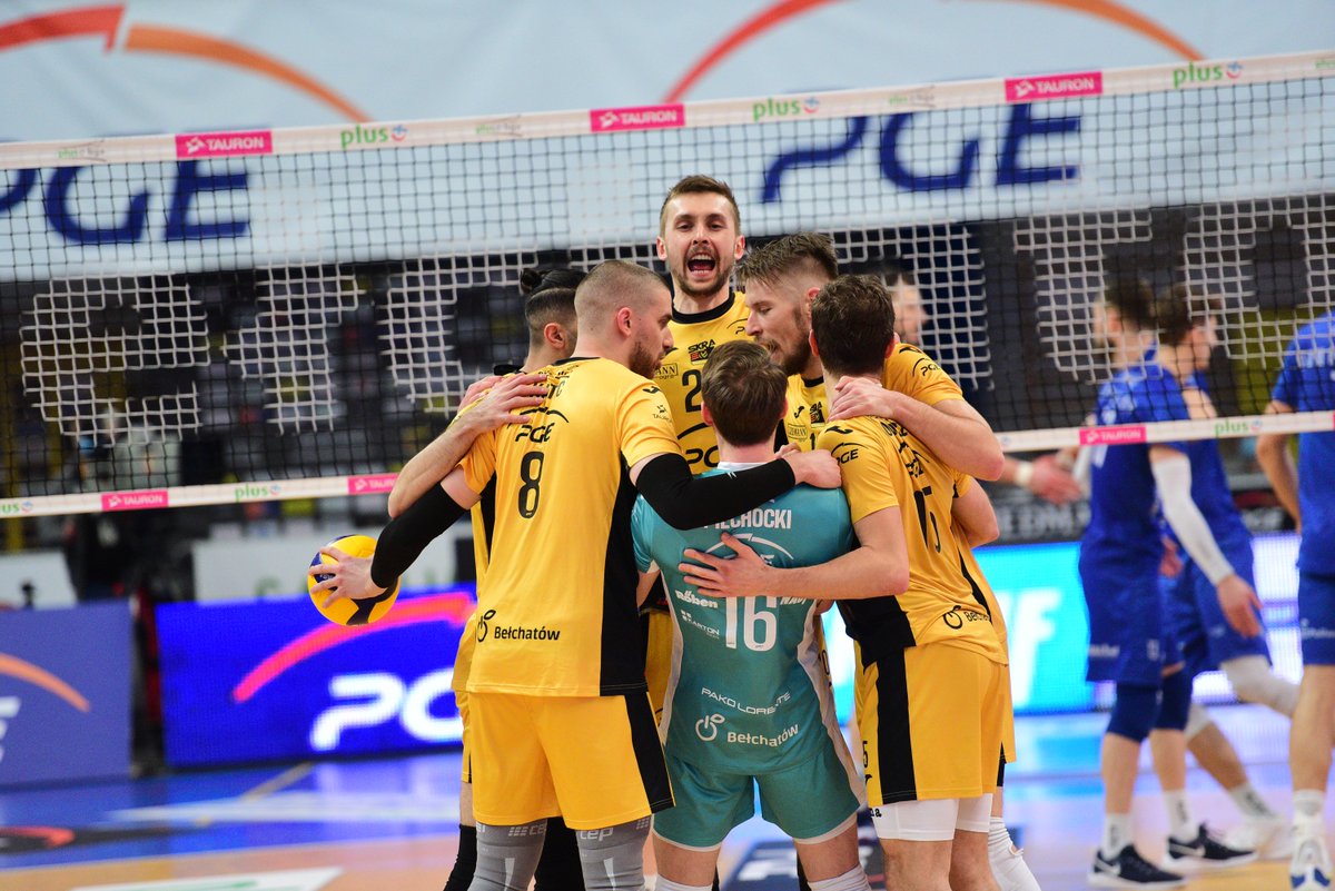 PGE Skra: Łomacz, Katić, Bieniek, Petković, Ebadipour, Kłos, Piechocki (libero) oraz Huber, Sawicki