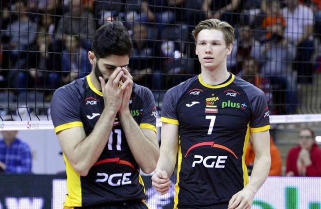 PGE Skra: Łomacz, Kochanowski, Ebadipour, Wlazły, Kłos, Szalpuk, Piechocki (L) oraz Droszyński, Teppan, Orczyk