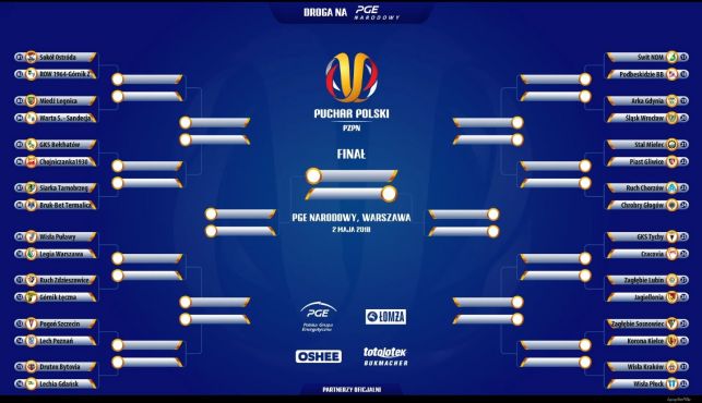 W losowaniu drabinki 64. edycji zmagań o krajowy puchar wzięli udział, widoczni na zdjęciu, Sekretarz Generalny Polskiego Związku Piłki Nożnej Maciej Sawicki (w środku) oraz Dyrektor Departamentu Rozgrywek Krajowych PZPN Łukasz Wachowski (po prawej).