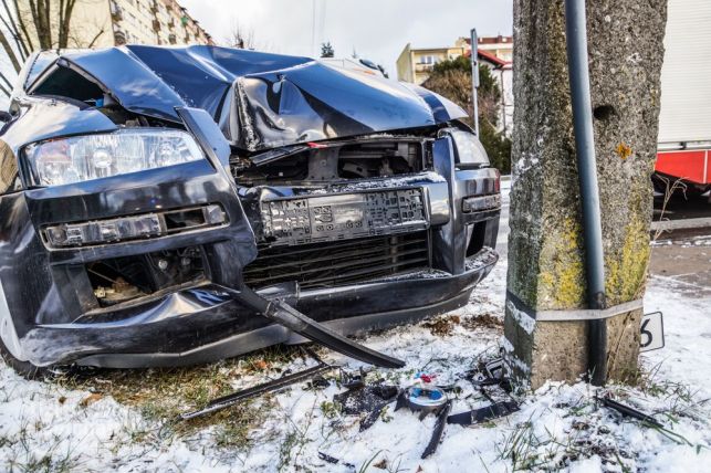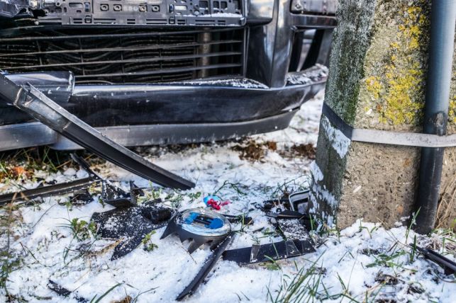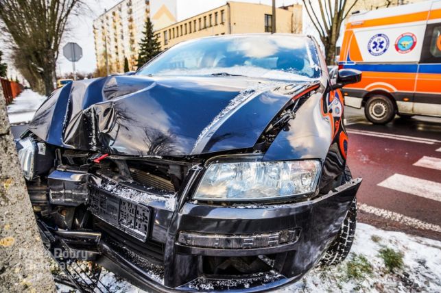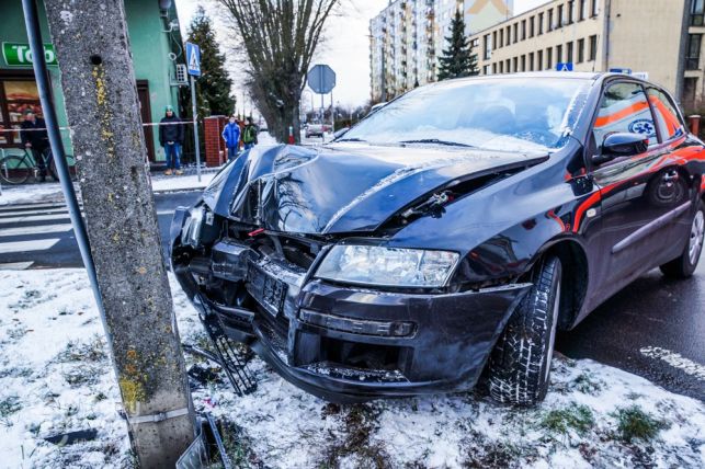 3 promile i śliska osiedlowa droga. Kompletnie pijana kobieta wjechała w słup energetyczny [FOTO]