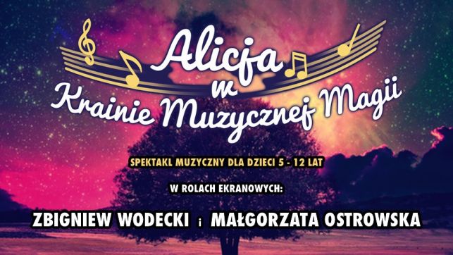 Multimedialny spektakl muzyczny dla dzieci (5-13 lat) „Alicja w krainie muzycznej magii”, to muzyka, magia, intryga, dynamiczna akcja i dobry humor. Akcja spektaklu rozgrywa się na scenie i równolegle na kinowym ekranie. Jest to w połowie film, a w połowie tradycyjna sztuka teatralna. Publiczność poznaje niezwykle barwnych bohaterów. Na ekranie pojawią się m.in.: Skrzypek na dachu (Zbigniew Wodecki) i dobra wróżka Polihymnia (Małgorzata Ostrowska). Na scenę zawita również Królik Raper, Kapelusznik Jazzman, księżna Atonalia, komputerowy Wirus, pełen złych zamiarów intrygant Tryton oraz tytułowa Alicja.