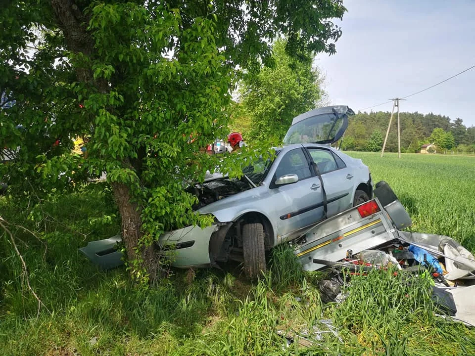 Wczoraj ok. godz. 13 strażacy otrzymali wezwanie do poważnego wypadku we wsi Podlesie. Kierowca srebrnej renault laguny z podpiętą przyczepką zjechał z drogi i uderzył w rosnące obok drzewo. 62-latek był trzeźwy. Na razie nie wiadomo, co było przyczyną wypadku i dlaczego samochód wypadł z drogi.