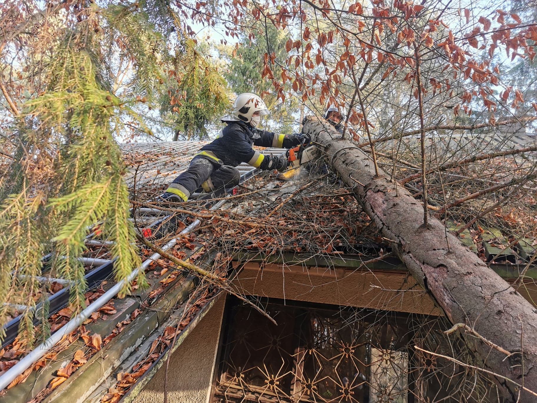 Strażacy zostali wezwani do miejscowości Czarny Las w czwartek, 26 listopada przed południem. Gdy dotarli na miejsce okazało się, że na domek letniskowy runęło około 15 – metrowe drzewo.