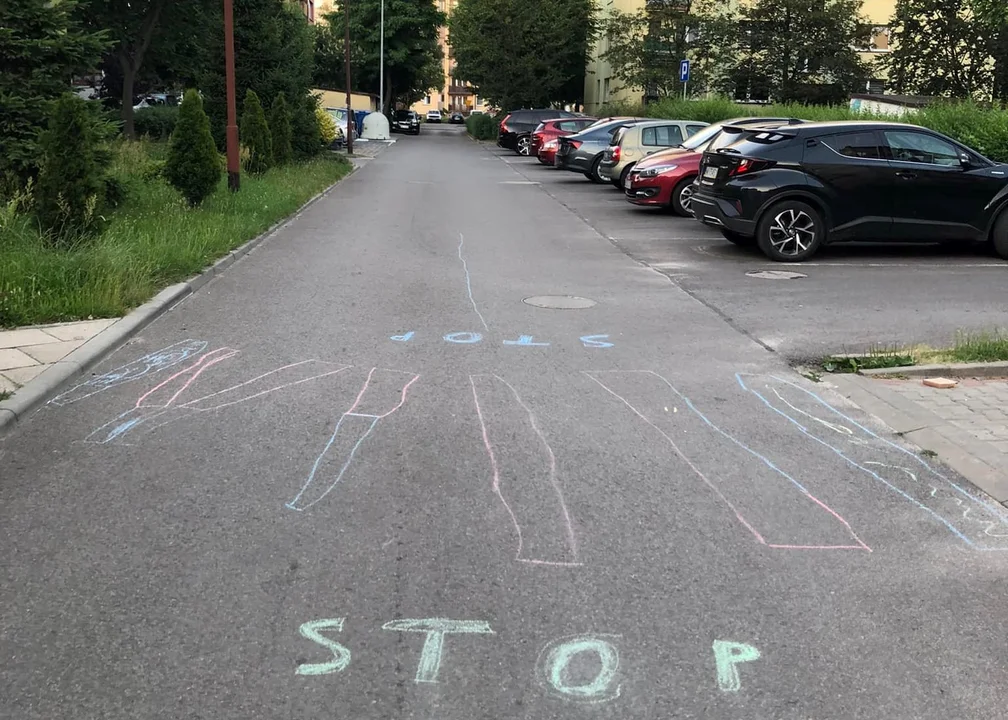 Nietypowe dzieło dzieci z osiedla Dolnośląskiego pojawiło się w mediach społecznościowych. Na zdjęciach widać namalowane kredą przejście dla pieszych wraz z napisami „stop” po obu jego stronach. Ta „instalacja artystyczna” pojawiła się w okolicach bloków nr 212 i 215.