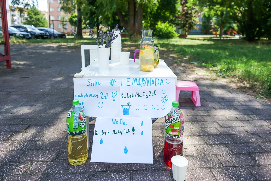 Dziewczynki w krótkiej rozmowie podzieliły się kilkoma ciekawymi historiami. Z opowieści wynika, że bełchatowianie bardzo pozytywnie reagują na ich pomysł i chętnie kupują lemoniadę, a nawet dają im małe upominki. Dziś pewna kobieta podarowała im trochę lawendy, żeby mogły udekorować stoliczek.