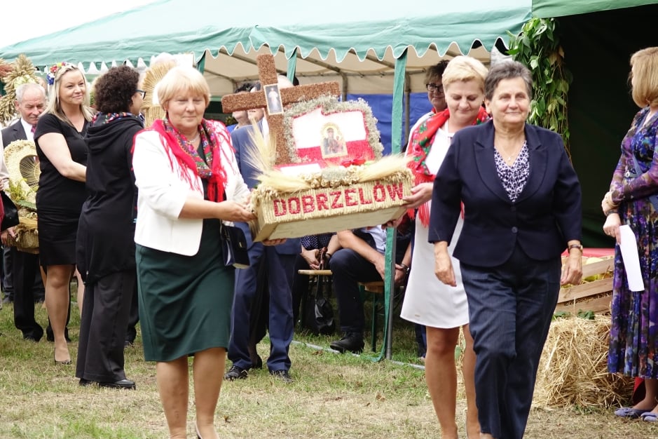Nie mogło też zabraknąć tradycyjnych wieńców, które przygotowało 15 sołectw z terenu całej gminy. Wójt, Konrad Koc odebrał też bochen chleba wypieczony z mąki z tegorocznych zbiorów.