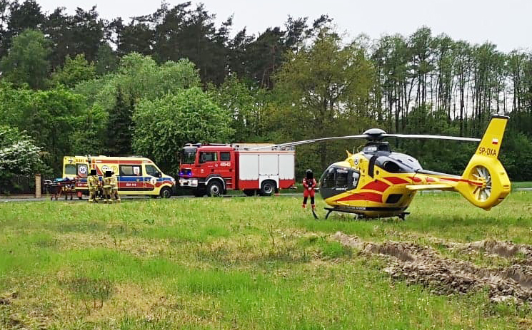 Na miejsce natychmiast zadysponowano strażaków z PSP Bełchatów, ochotników z OSP Wadlew, Zespół Ratownictwa Medycznego oraz policję. Niezbędna okazała się też interwencja śmigłowca LPR. Poszkodowanego mężczyznę drogą powietrzną przetransportowano do Centrum Leczenia Oparzeń. Niestety nie wiemy, w jakim jest stanie.