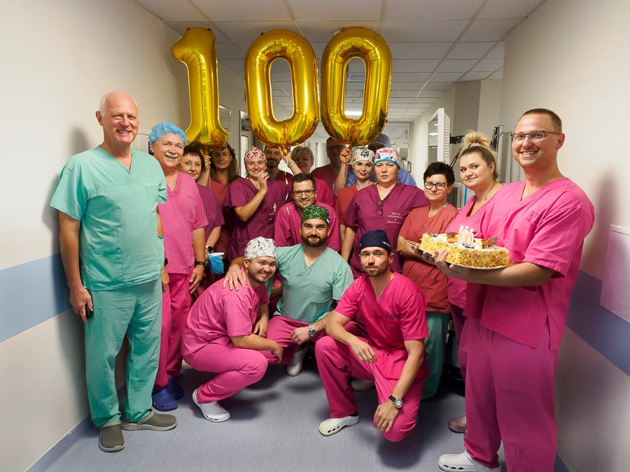 Okazuje się, że równo rok po tym jak do bełchatowskiego szpitala trafił nowoczesny robot, personel miał wyjątkowy powód do świętowania. 14 lipca w placówce odbyła się bowiem setna operacja z użyciem Versiusa. Z tej okazji pracownicy pozwoli sobie na chwilę świętowania przy pysznym torcie. Nie mogło również zabraknąć symbolicznej setki ułożonej z balonów z helem.