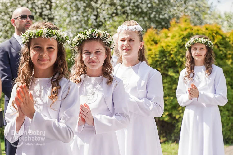 W niedzielę (8 maja) do Pierwszej Komunii Świętej przystąpiła również grupa dzieci ze Szkoły Podstawowej nr 3 w Bełchatowie. Uroczystość odbyła się w ogrodach parafialnych przy ulicy Kościuszki.