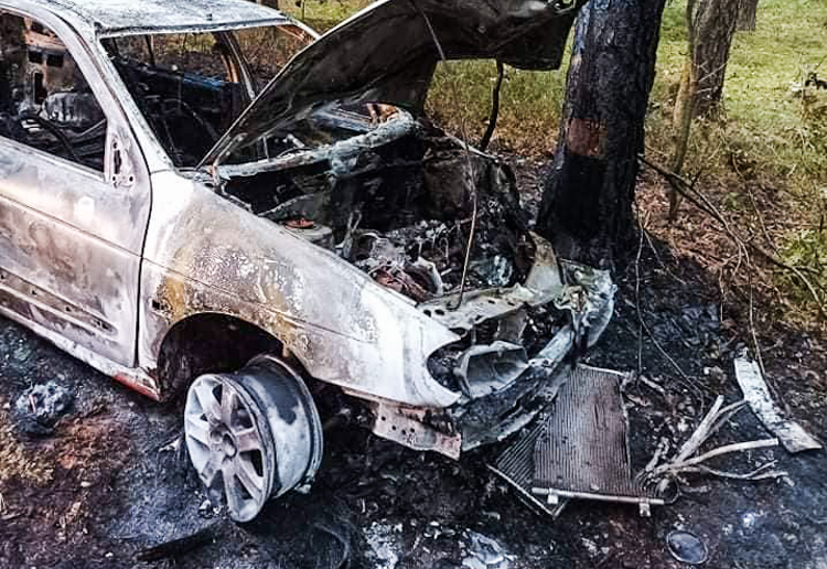 Policjanci, którzy w nocy 26 września patrolowali okolice Bełchatowa, w pewnym momencie zauważyli płonący w lesie samochód. Z informacji udzielonych przez mundurowych wynika, że ślady na drodze jednoznacznie wskazują, że kierujący stracił panowanie nad pojazdem na łuku drogi. W efekcie samochód wjechał w znak drogowy, zatrzymał się na drzewie i stanął w płomieniach. Na miejscu nie było jednak kierowcy renault — mundurowi zastali tam świadka całego zdarzenia, który widząc niebezpieczne zajście zatrzymał się, by udzielić pomocy ewentualnym poszkodowanym.