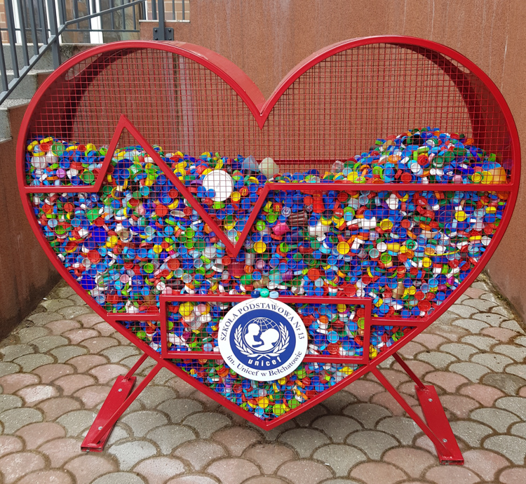 Szkoła Podstawowa nr 13 im. UNICEF w Bełchatowie zaangażowała się w akcję "serce dla serca". Inicjatywa polega na zbieraniu plastikowych nakrętek dla dzieci potrzebujących pomocy. Nakrętki można wrzucać do dużego pojemnika w kształcie serca, który stanął pod budynkiem szkoły.