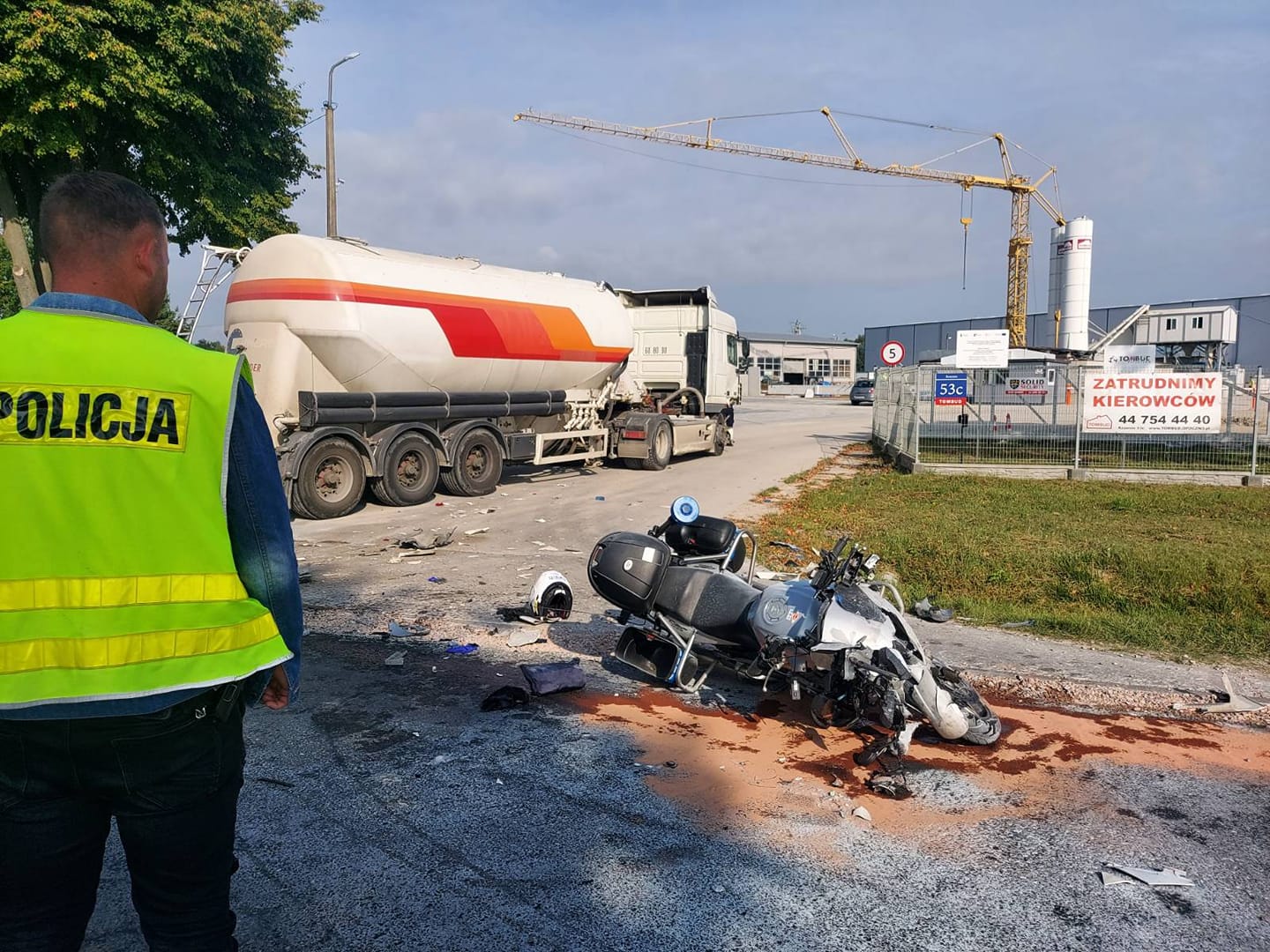 W poniedziałek, 13 września około godziny 08:20 w miejscowości Kozenin (pow. opoczyński) doszło do bardzo niebezpiecznego wypadku z udziałem pełniącego służbę policjanta. Ustalenia z miejsca zdarzenia wskazują, że 19-letni kierowca ciężarówki marki Daf, wykonując manewr skrętu w lewo, nie udzielił pierwszeństwa przejazdu, doprowadzając do zderzenia z jadącym z naprzeciwka motocyklem.