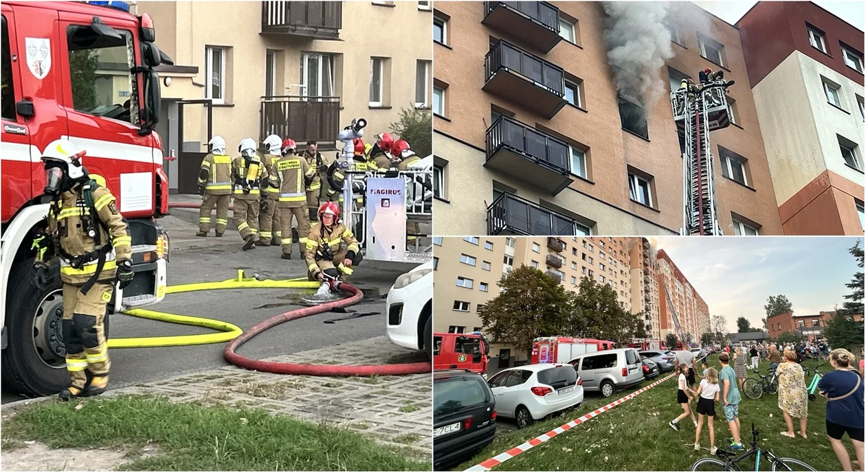W akcji gaszenia pożaru brało udział aż 10 zastępów, w tym dwa wozy z drabiną. Łącznie 46 strażaków. Na miejscu pracowali też policjanci i strażnicy miejscy. Była też karetka pogotowia, jednak jak przekazuje rzecznik strażaków, na szczęście nikt w pożarze nie ucierpiał. Warto zaznaczyć, że już po około 30 minutach ogień został opanowany i była pewność, że nie będzie się dalej rozprzestrzeniał. Akcja gaśnicza trwała jednak o wiele dłużej, bo trzeba było dogasić zgliszcza wewnątrz mieszkania, a także oddymić klatkę schodową. Jak przekazuje Wieczorek, strażacy swoją pracę zakończyli o godz. 22.39.