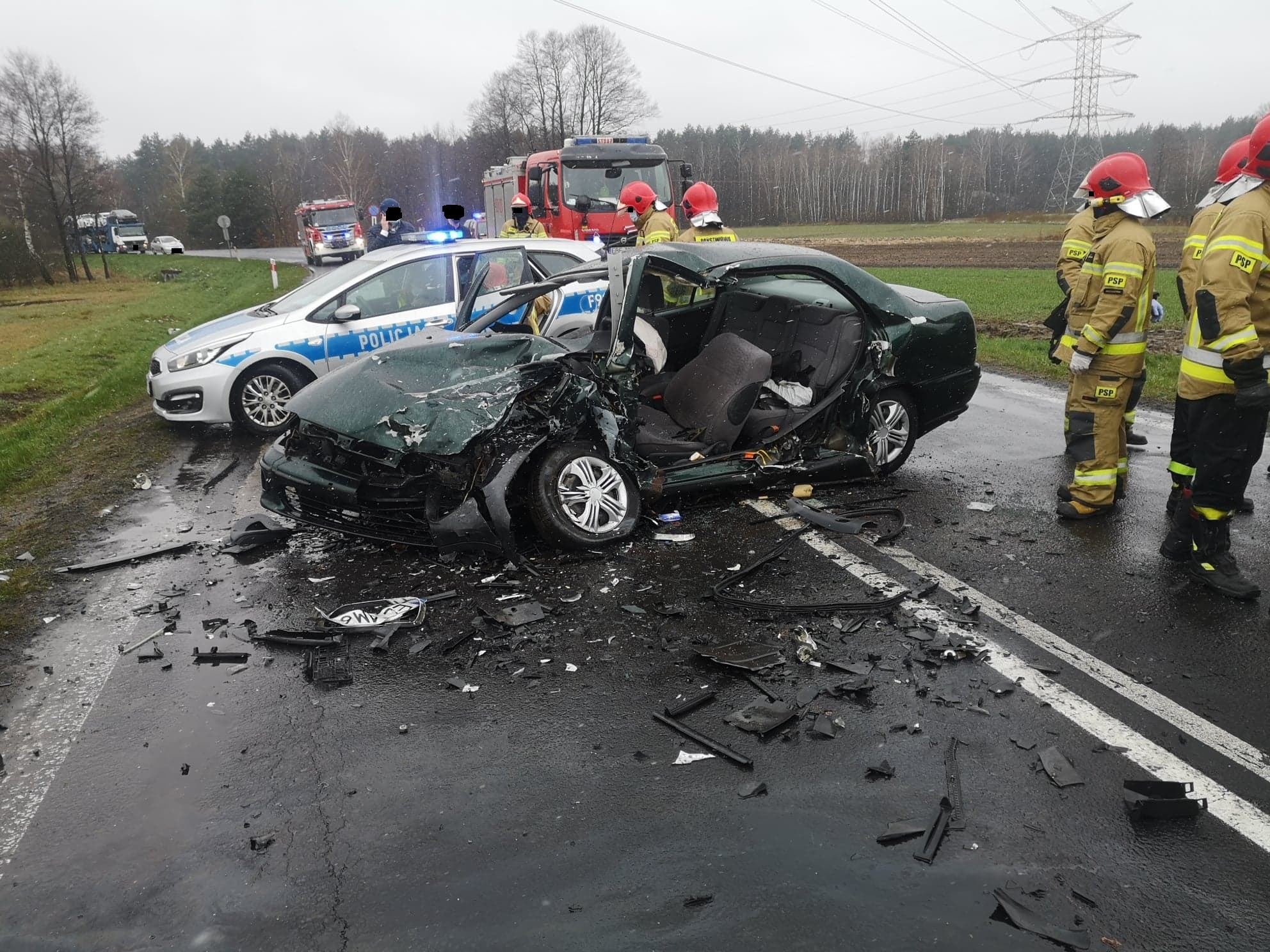 Do tego groźnie wyglądającego zdarzenia doszło tuż przed godziną 08:00, w czwartek 15 kwietnia. Wstępne ustalenia policji z miejsca wypadku wskazują, że kierujący fiatem, 38-letni mieszkaniec Bełchatowa, który jechał w stronę Łodzi, wpadł w poślizg na łuku drogi. Przyczyną utraty panowania nad pojazdem było najprawdopodobniej niedostosowanie prędkości do warunków pogodowych. Pech chciał, że w tym momencie z przeciwnej strony nadjechało rozpędzone BMW, którego kierowca nie zdążył wyhamować i czołowo zderzył się z fiatem.